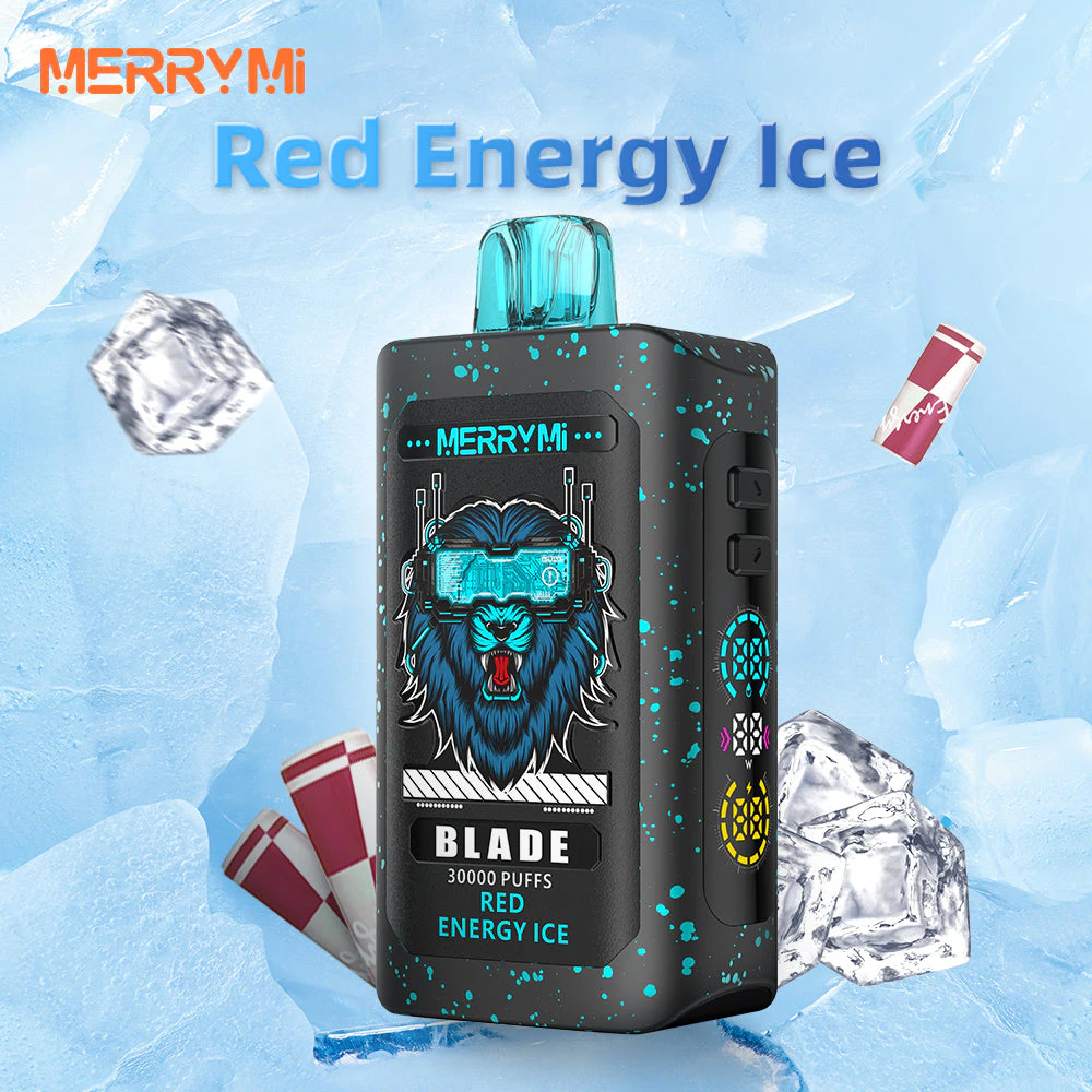 .buy Blade 30K Red Energy Ice. MerryMi Blade 30K it’s revolutionary disposable e-cigarette, which combines modern technologies, strong design and amazing performance. Thanks to the impressive amount of up to 30,000 puffs, Blade 30K sets a new standard in the world disposable. Huge capacity 26 ml of e-liquid and solid 850 mAh battery guarantee uninterrupted vaping for a long time — without compromise.buy Blade 30K Red Energy Ice