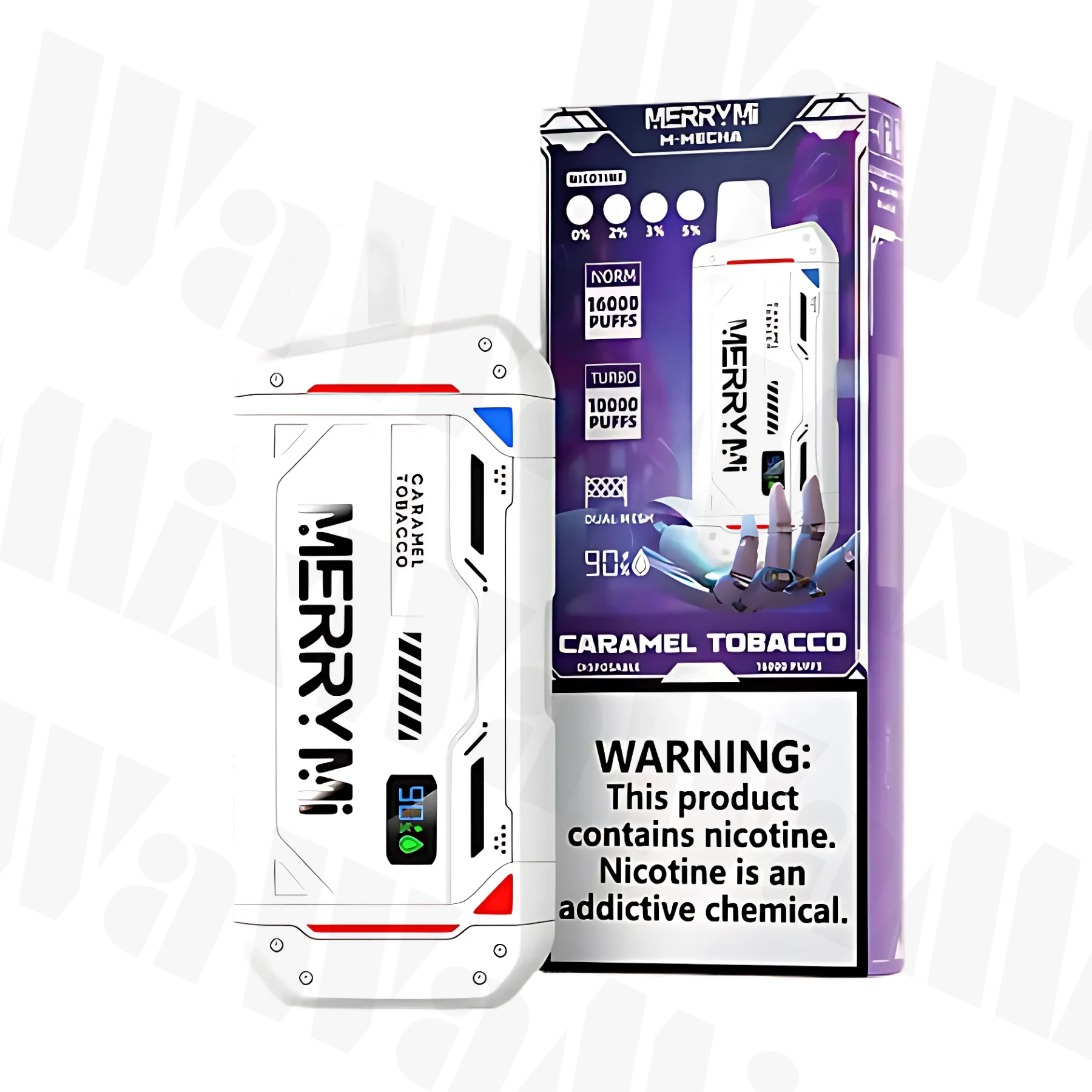 The M-Mecha 16000 is an innovative disposable e-cigarette that offers a unique vaping experience. With a capacity of 20 ml of e-liquid and an 850 mAh battery, it provides as many as 16,000 puffs, guaranteeing long service life. Taste Model Caramel & Tobacco (Carmel-Tobacco) it provides intense, refreshing experiences. With MTL mode and fast USB-C charging, the M-Mecha 16000 is an excellent choice for people looking for a convenient, maintenance-free solution for a long time.