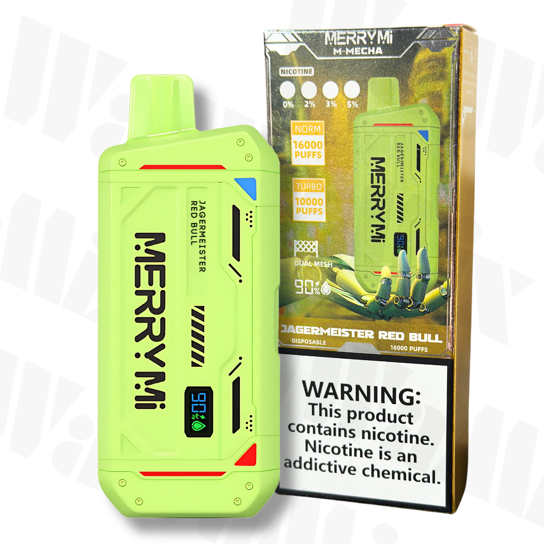 Available wholesale only through ChinaVapeMarket, the M-Mecha 16K Jagermeister Red Bull is suitable for distribution across Poland, Germany, the Netherlands, and the wider European Union. M-Mecha 16K Jagermeister Red Bull